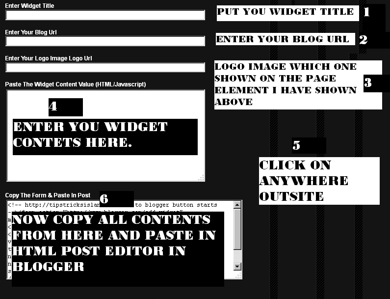 Just insert widget content as per shown in picture and click anywhere and copy another code which has generated has past it in the HTML Post editor in Blogger. You will find there is button of Add to Blogger in you post as per image shown below