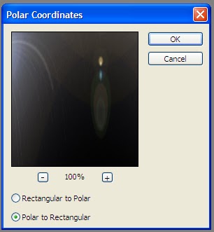 6. Open Polar Coordinate (Filter> Distort> Polar Coordinate) again select the Rectangular to Polar Secondly click OK