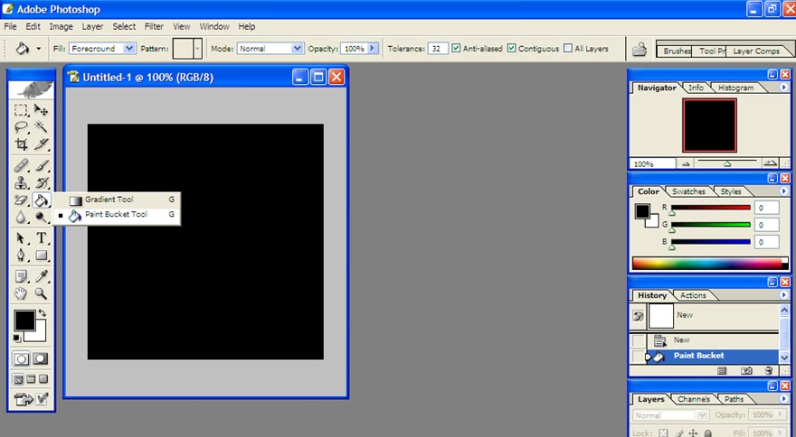 1. Open the Adobe Photoshop program, and then open a new document with the size of width 300 pixels and height 300 pixels with black background color (using the paint bucket tool)